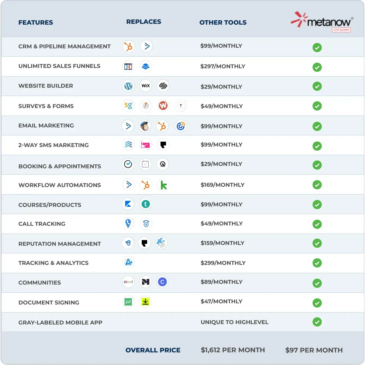 Un solo sistema, zero caos: Metanow CRM sostituisce 10+ app. Lead, funnel, comunicazioni e automazioni in un’unica piattaforma.